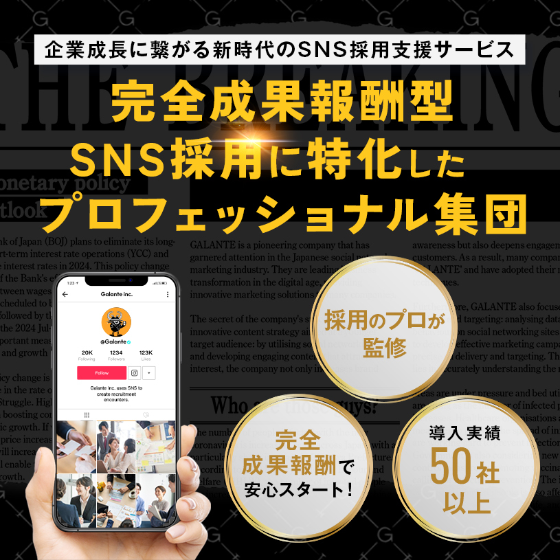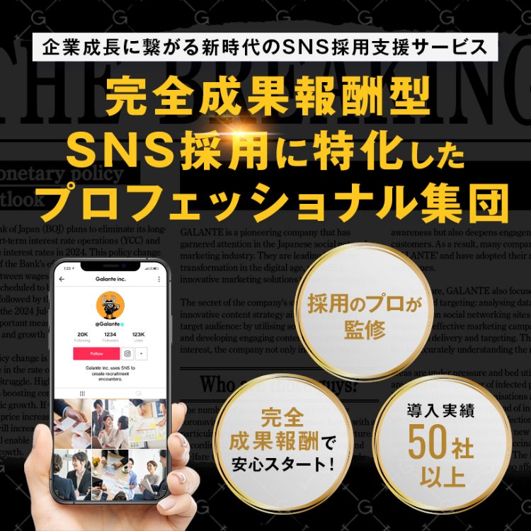 従来の求人サイトや紙媒体の広告とは異なり、企業専用のSNSアカウントから情報発信を行い、コメント・DM、またアカウント内に添付した求人媒体URLに流入させ人材採用を行う手法を指します。